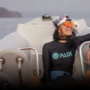 Smiling dive instructor relaxing on a boat after training, representing authentic storytelling in dive marketing and emotional connection with divers.